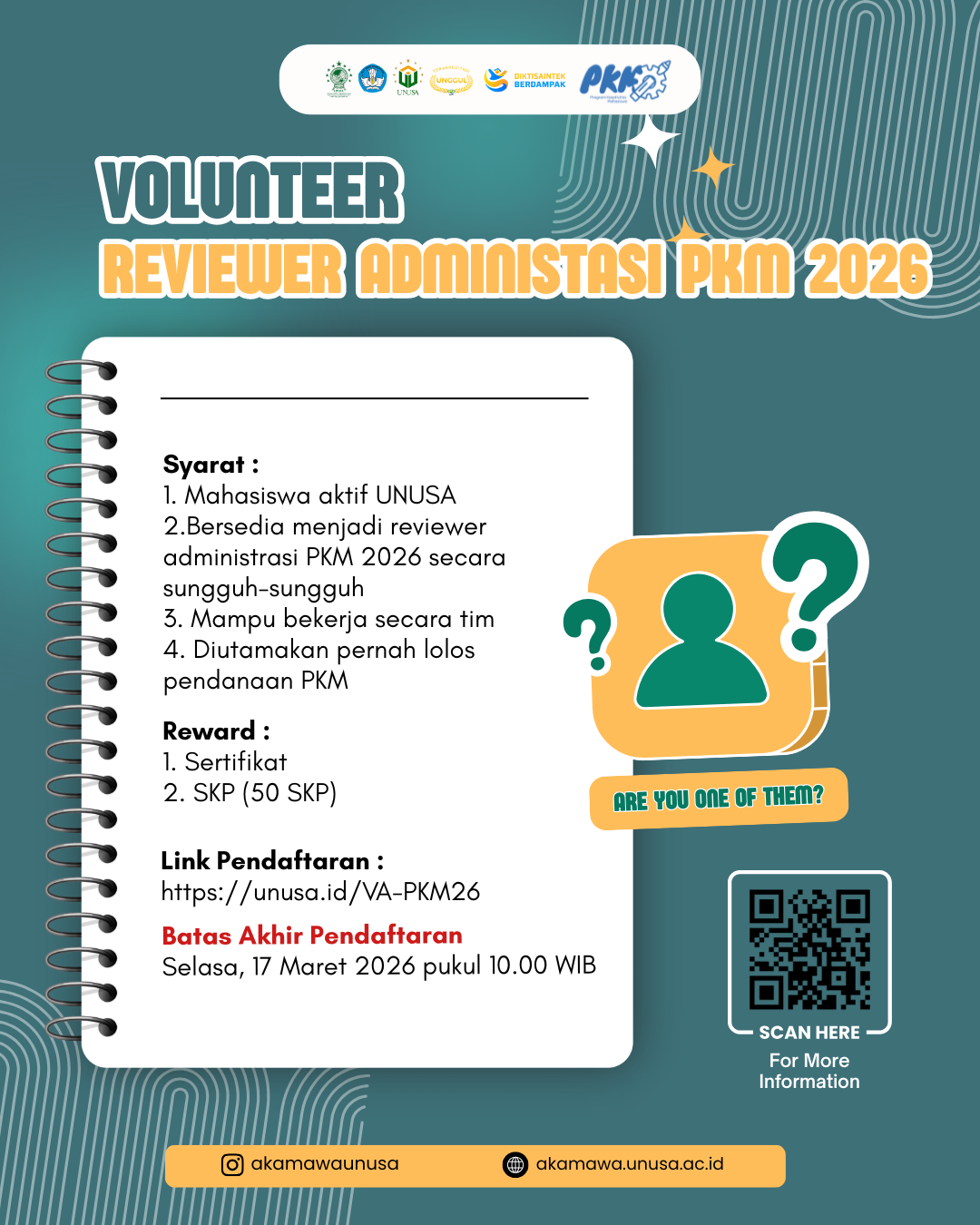Direktorat Akademik, Kemahasiswaan, dan Kealumnian UNUSA membuka kesempatan bagi mahasiswa untuk bergabung sebagai Volunteer Reviewer Administrasi PKM 2026 .